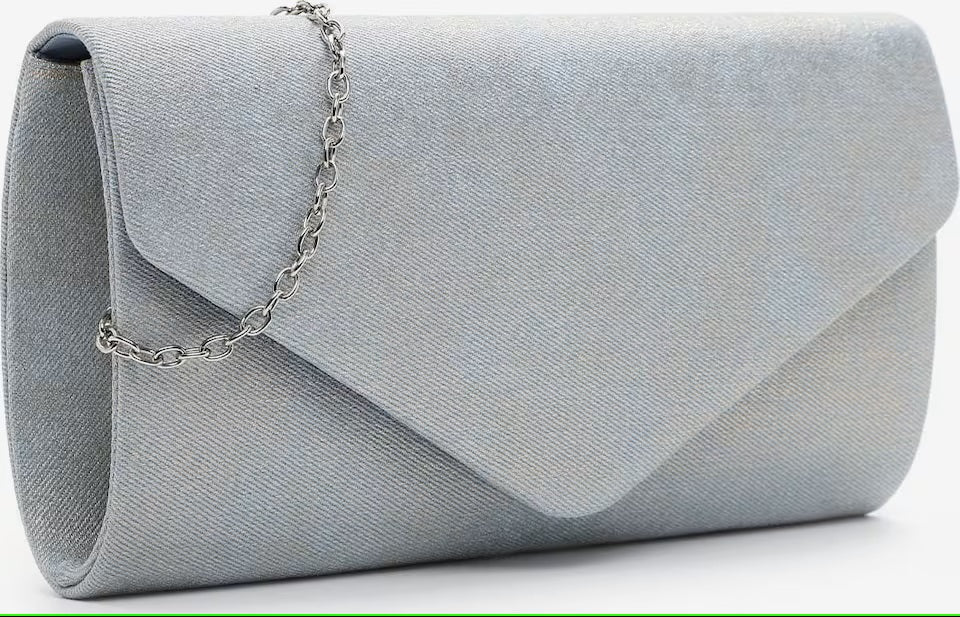 Smart kuverttaske/festtaske i lyseblå denim med et strejf af sølv fra Tamaris.